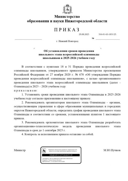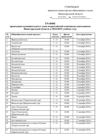 Приказ Департамента образования Кстовского муниципального округа от 09.09.24 "О проведении ШЭ ВсОШ в 2024-2025 уч.г"